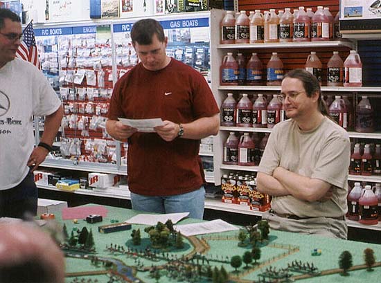 American General Mark Gilbert carefully checks the victory conditions and set-up guide while General Greene (Phil Young) keeps a calm over-view of the situation.