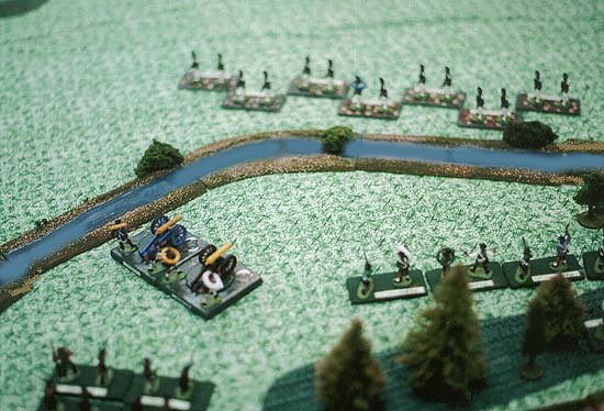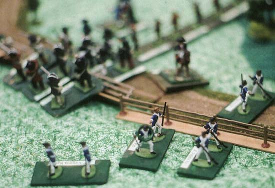 A view of the center, with the Patriot's flanking battery. The figures in the staggered formation (open order) were loyalist light troops.