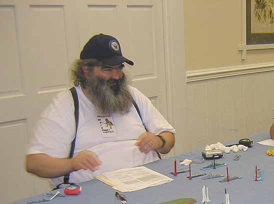 Whit running a WWII naval game at Bayou Wars 2006 at the Battlefield Inn, Vicksburg MS. Whit loved naval warfare. He and Jay Stribling ran many a game on the carpet of Whit's apartment starting in 1973. We later progressed to tables. He and Jay wrote the "Club Rules" that we used with the 1/1200 ships.