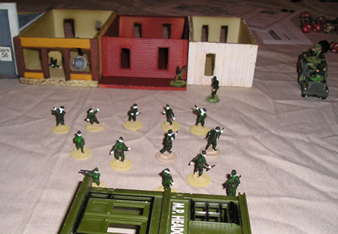 The player running the operatives did a good job getting the reserve players moving and keeping them in line, while not telling them a bit about what was going on. When I first read the scenario, I'd thought that the reserve players would be tempted to bug-out at first chance and Eric (the player running the officer) did a good job at "taking charge." It was only towards the very end of the game that Angel (the player running the grenadier "Thumper" and the female MP - a pre-generated rifleman) was getting suspicious as to their ulterior motives…by then, it was too late.