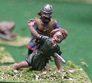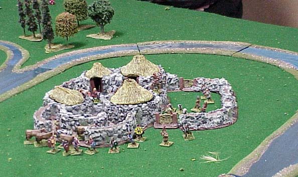 Some of Larry Reeves' Saxons finish off a melee near the main entrance to the villiage.