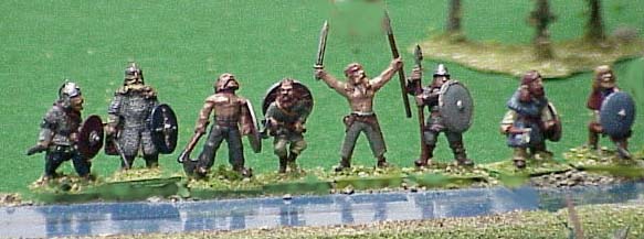 A Viking war band stands at the brink of the river - but they hesitate? For three turns the savage "scourge of god" warriors stood on the bank of the river and howled for Saxon blood and plunder. Finally they forded the river - less their leader who had drowned. He was decked out in such fine armor, he could not bear to toss it aside to swim, so he sank.