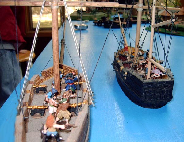 A close-up view of the Plunder. Both ships were under the command of 'Mad dog John' and contained two 10-man units of pirates.