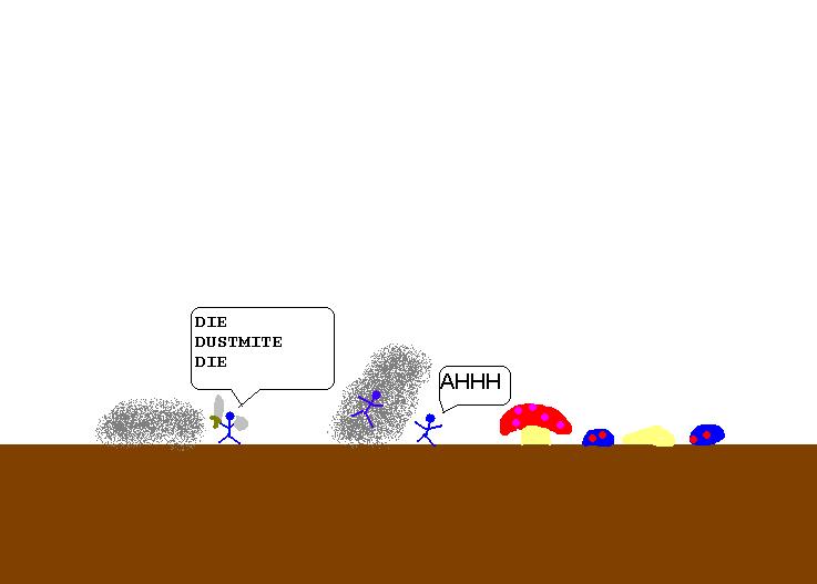 The epic war between Smurfs and dustmites. -------------------------------------------------------------------------------------------------------------------------------------------------------------------------------------------------------------