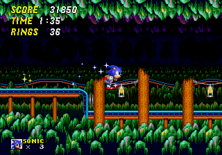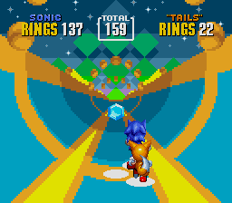 Other new gameplay elements are the 3D Special Stage where you must collect the amount of rings to collect all 7 Chaos Emeralds. Collect all 7 and you can turn into Super Sonic, a golden long spiked verson of Sonic where after collecting 50 rings and jumping, you become invinsible for 50 seconds or longer as to how many rings you get.