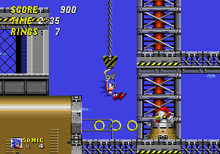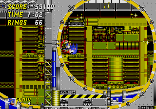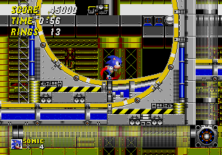 Flash through a high-tech maze built of pipes and ducts. Robotnik's flooded the factory with a pool of toxic liquid called "Mega Mack" that poisons Sonic in a few moments of contact.