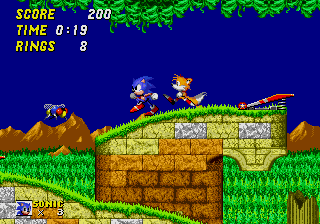 Sonic 2 has way more options to choose from then the first game. It has Sonic's new move, the Spin Dash where he rolls in a ball, spins really fast, and lets go taking off spinning. Sonic also has his new side kick, Tails, who can't fly as 1 player, but if as Sonic he can fly to catch up.