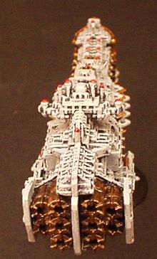 A more drastic approach was obviously needed . It was decided to rebuild damaged Gothics using the engines designed for the fleet carriers currently being built by the Massada shipyards to designs by Noah Ben Shalek. So it was that the Gothics were rebuilt as battlecruisers with heavy modifications and at great cost but with sufficient power to meet all design criteria. The resultant vessel however incorporated an enlarged armoured prow, a deep sensor filled keel and dorsal lances with a range of 60.
