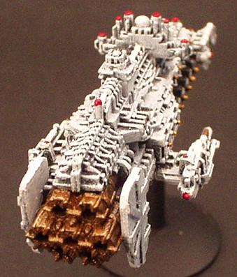 Where the Goli really comes into its own is in planetary assault it will open the four enormous hold bays and disgorge drop pods and drop ships and all the encumbrances of an invading force in the twinkling of an eye.. Based on the ancient Goliath transports the Goli is a cut down version with added bombardment cannons and torpedoes..