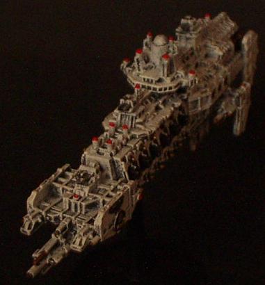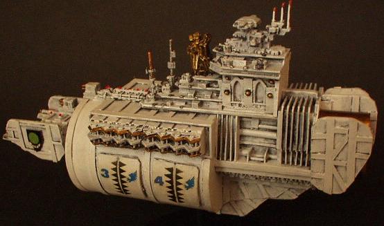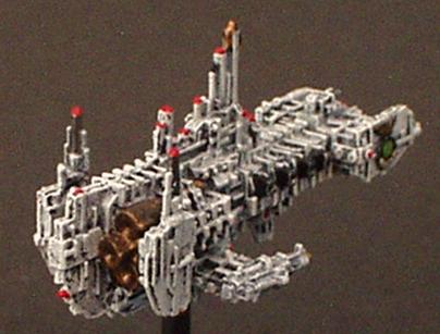 The Goli is an enormous armed transport capable of transporting a marine force with the capacity to invade and capture a planet.. The Goli can carry the marines , their armour and any supporting titans they may have.. In a space battle the ship can hold its own at long range because of the bombardment cannon and the clouds of ordnance it can launch..