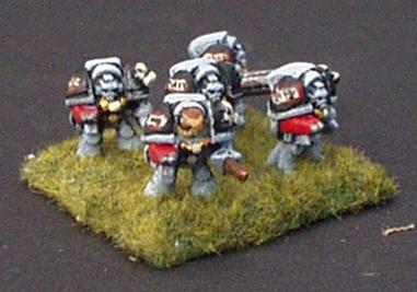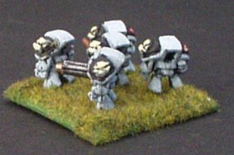 The Space marines of my galaxy are indeed the same bio engineered warriors to be found in GW's warhammer 40k. I love the 6mm figures and the ideas behind them. I have maintained the idea of chapters but organised them along regular military lines. They are an elite branch of the army rather than independent religious units as in WH40K. Golgotha has one resident chapter. They are the "Sons of the dead earth". It's base is in the Golgotha sub sector in the Adams rib system and is a mobile asteroid fortress. Following the destruction of Earths population in the pre imperial period, the planet Eden was settled by devotees of the green earth party. Their love of the original homeworld gave them an unbending allegiance to the Emperor and made them a natural recruitment pool for the marines. This devotion to the cause was so strong that the imperium agreed to the forming of the new chapter that now has a history spanning eight millennia. When the Spiral rebelled, the chapter stayed true to the Emperor. This was important strategically as the system contains the only warp link to the Gethsemane sub-sector, a source of fresh reinforcements for the insurrection.