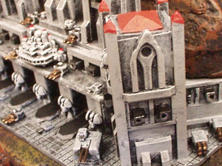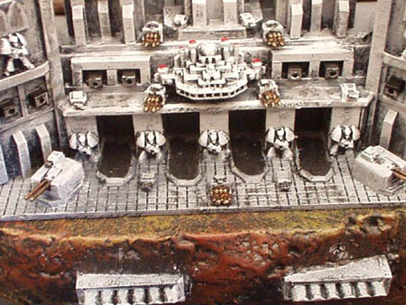 Because "The Sons of The dead earth claim" terra as their home planet and Imperial law allows no chapter to settle on earth, the Sons at founding made their base on an ancient fortress once part of earths defence system. The huge towering rock has powerful but slow engines allowing it a degree of movement and an ability to use the warp in the same fashion as the Ramillies fortresses. "The rock" as the chapter refer to it, is a stark , heavily armed home for the chapter. Bristling with weapons batteries, lances, bombard cannon, torpedoes and a launch ability for hordes of thunderhawks the rock is the core of the marines fleet a secure base when the going gets tough.