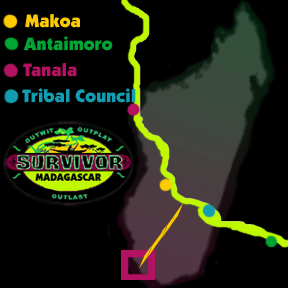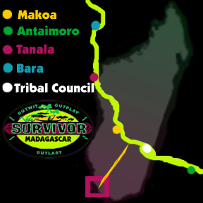 This newest map shows the previous Tanala, Antaimoro, and Makoa locations. The 10 castaways left formed the Bara tribe. This is how the map will stay for the rest of the game! |