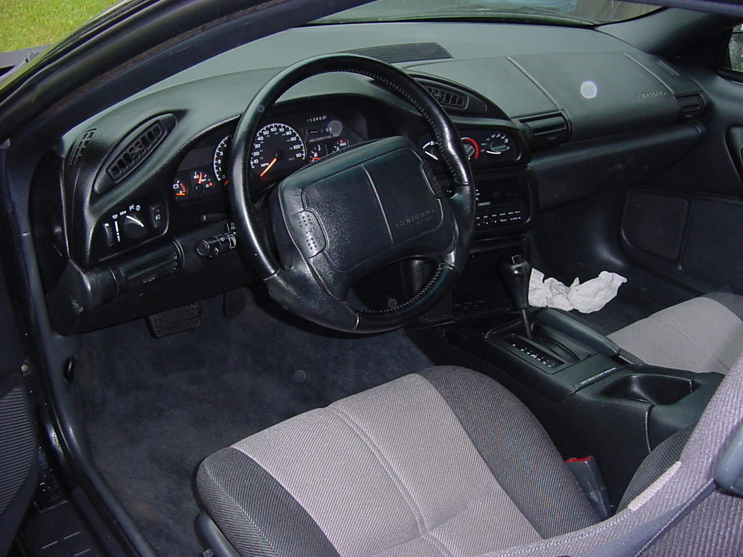 It's fully stock 1994 Camaro with a V6 3.4L engine and has an automatic transmission. It has a pretty clean interior. There are no floor mats at the moment. The exterior definitely shows of use. The hatch has electrical tape around it's hinge so it holds tighter.