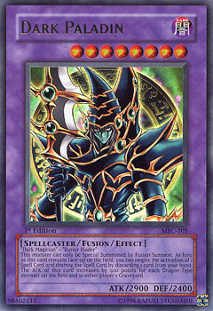 Black Paladin works a little differently in the current metagame than you might think it does. There is usually NO Dark Magician in the deck. Not one. Because Dark Paladin uses Polymerization to fuse, you don't need Dark Magician; you can use a fusion substitute such as King of the Swamp(Rare, AST), Mystical Sheep #2(Rare, TP2), Goddess of the Third Eye(Rare, I think TP2). King of the Swamp is the best because it comes in a normal set and can be taken with Salvage. But Salvage isn't entirely necessary.