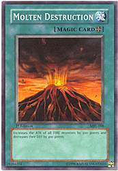 Fire is basically about beatdown, with some direct damage thrown in. Having two Solar Flare Dragons on the field deals 1000 damage a turn and doesn't allow your opponent to attack either of them. Magic Reflector, Terraforming...all used to get and protect Molten Destruction, but this field card is not nearly as important as Necrovalley in a Gravekeeper Deck. This is probably one of the cheapest decks to make; and it's still pretty good.