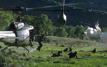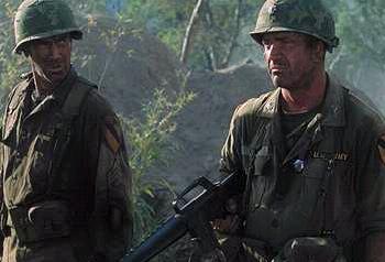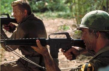 We Were Soldiers is the story of the U.S Army Lt. Colonel Hal Moore (Mel Gibson) and his battalion of aircavalry around the time of the battle at la Drang valley during the Vietnamese War. Lt. Col. Moore whips his men into shape with help of the crusty old veteran Sgt. Maj. Plumley (Sam Elliot). They ride into battle in Maj. Bruce Crandal (Greg Kinnear)'s helicopters. War photographer Joe Galloway (Barry Pepper) joins in as the battle escalates even more. Col. Moore is forced to signal "Broken Arrow" which means that all available planes must come help an american being overrun.