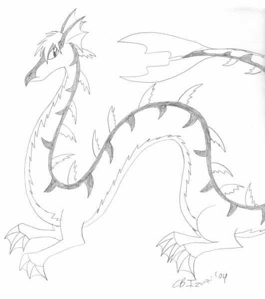 My Champion level, Torrentdramon. A few inches of length had to be chopped off to fit it all into the drawing space ^^;