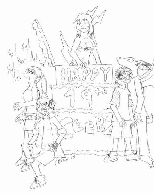 Y'know what? I tend to bounce back and forth, if you haven't noticed ^^; So, it is with that knowledge now in your head, I announce my decision to start allowing racey art again. My original decision to take away that was partly due to the fact that my own art is not good enough in that category, in my own opinion. And I draw so few "quality" pics in that way anyway, so any updates in that dept of my own would be few and far between. But now that we have a DECENT artist who agreed to let me post his art, and specializes in that sort of art, I'm bringing it back. This'll allow me to post any other pics in the future now that I would deem to be in that category. Of course, this would require me to put a warning up on the entrance page, and an offshoot of the main gallery....which is why I'll be updating steadily throughout the early morning (as I write this, it's about 4:22 AM). So anyway, if you happen to come around anytime between 5 and 6 AM, keep refreshing 'cause I'll still be working ^^; BTW, the artist I mentioned is the awesome Jax! Furry people will probably know that name well ^^ He's a friend of mine, yep yep. Link to his site will be in the Loading Dock, and in the Gallery's subsection, with his art.