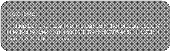 XBOX NEWS: In a suprise move, Take Two, the company that brought you GTA series has decided to release ESPN Football 2005 early. July 20th is the date that has been set. |