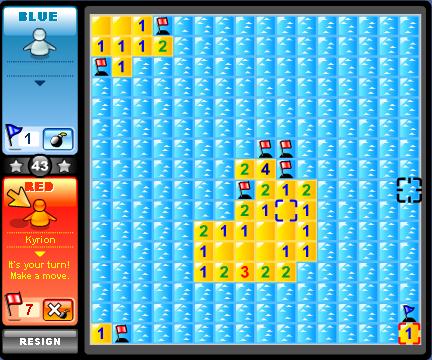 The objective of Minesweeper Flags is to find more of the 51 mines in the 16*16 grid than your opponent, as the chances of hitting a mine is less than 20% you need to have some idea of what you're doing to stand much chance of winning (unless your opponent is similiarly clueless of course!)