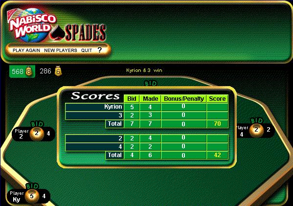 And lastly this is a win after only two games. The first game had me getting a DNIL (200) and my partner guessing and getting 6 (60 points) whilst the 2 computers bid 3 in total and got 7 (34 points)