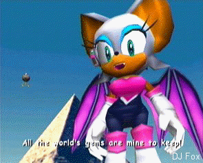 Rouge is a treasure hunter and thinks all gems are hers and only hers. She wants the Master Emerald, but of course Knuckles won't give it to her. Even after the Master Emerald is broken into many tiny shards, she looks for each individual piece. She is also a government spy, paid with gems of course. In the end, she gives up her spying career and her hunting, saying "It's too much work, for too little pay." It is believed she may have a crush on Knuckles.