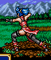 A priestess from the second Shining Force. Later, she can be promoted into a master monk, a fighting healer. Sarah fights in her master monk form here. Sarah is a classmate of Bowie's (The Shining Forces leader). Trained as a healer, she does her best to make sure that the other members of the group aren't hurt. Strategy: Sarah is a melee fighter. Her moves require her to be as close to the enemy as possible. She has no distance attacks, so if the enemy gets away, Sarah has to follow them. Just beware of counters, her low defense lets her be worn down by chipping damage. Combos: Similar To: Chun Li Stats: Power: 4 Energy: 5 Defense: 4 Speed: 8 Ratio: 2 Drain: Healing Special Moves: Fury Punches: A quick series of punchs. E.Honda’s 100 hand slap attack Spinning Bird Kick*: A upside down helicopter kick High Kicks*: Jumps into the air with repeated kicks. Like Chun-Li’s attack. Chi-Ball: Holds out a ball of holy energy (H) Shield: Raises defense by 1 point for 10 secs Healing*: Casts healing magic on the target. Bonus: Dodge Launcher: She kicks straight up Hyper Attacks: Aerial Fury*: A hyper version of the High Kicks attack. Hits up to 16 times Monk Discipline: Sarah dashs forward (C) and attacks for 13 hits Supreme Aura: A spell that raises Defense and Speed each by 3 points for 10 secs. Enter: Takes off her priestess robes Taunt: Turns around and slaps her ass Victory: Sarah is surrounded by the healing light Top |