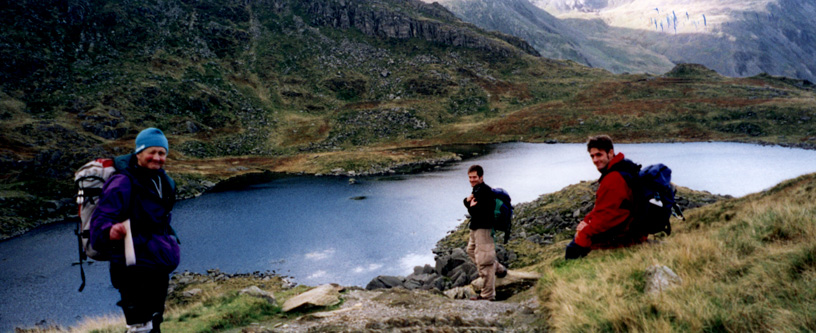Mr.D, Q-dog and Nutter at a lake in Snowdonia