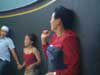in the line with his friend Mike.
