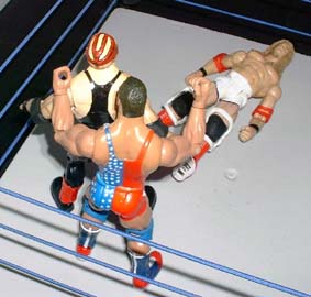 He then pulls him up to the top rope and hits a massive superplex.