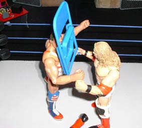 Kurt turns to Christian but Christian waffles him with a chair.