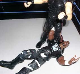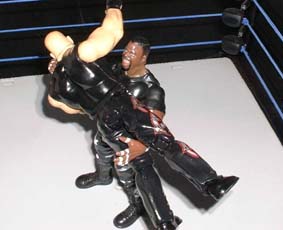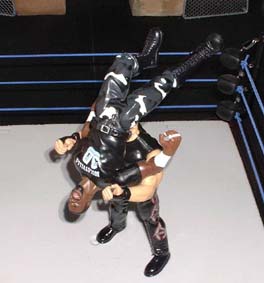 Albert then delivers a crushing double-arm, underhook piledriver.