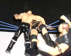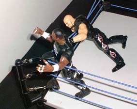 and then from nowhere delivers a Dudley-Cutter.
