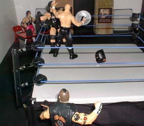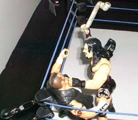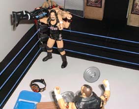 Rhyno backdrops Credible over the ropes as Tazz brings in some hardware.