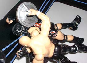 But Rhyno gets him from behind and smacks him with a lead pipe.