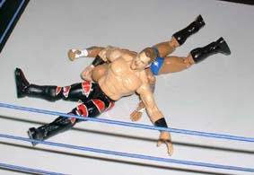 He then goes for the crossface, but Saturn manages to get a foot to the ropes.