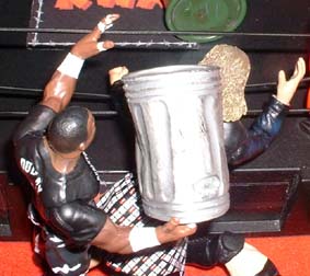 But Devon Dudley slams a trash can into Ravens head