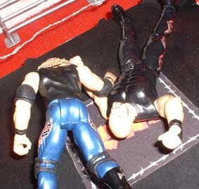 The ring has barbed wire ropes, plus there are two exploding C4 barbedwire boards, this is gonna be violent!
