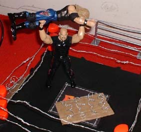 Christian then reaches under the ring and pullsout a sheet of glass, this could get ugly.