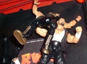 But Tazz doesn't see Eddie coming from the top rope, and gets taken down by the flying clothesline.