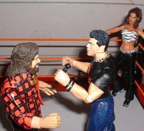 "So from now on I'm going to be the commissioner, and I'm gonna make the RWA the greatest fed in the world. As you can see I've invested in a new ring, and starting tonight we're gonna sort out the title situation. Rhyno will get his U.S title shot which he earned at Nightmare. And Christian never got a re-match against Saturn after he was cheated out of the title, so it's gonna be Christian vs Saturn for the World title!"