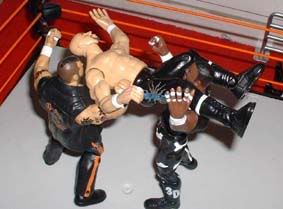 and Credible then gets a double powerbomb in thr ring.