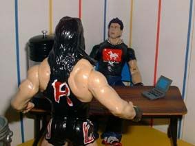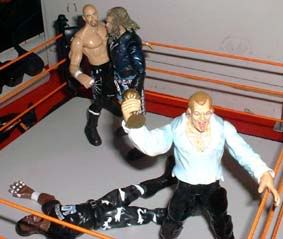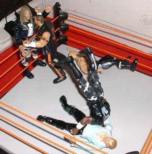 But Raven grabs Tazz, and Gangrel manages to hit a distracted Devon with an impaler DDT.