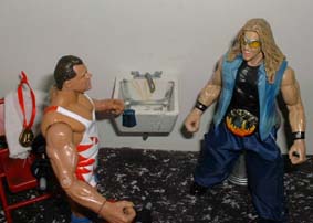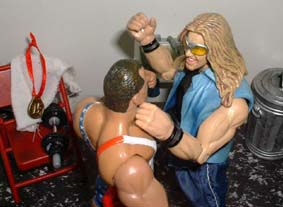 Kurt - "Hey, don't be like that, just cos I'll have to wrestle you at the PPV doesn't mean we can't be friends."