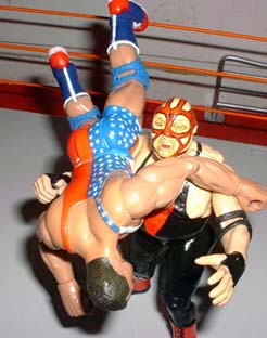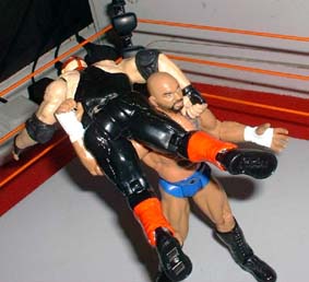 Vader sets Saturn up for a powerbomb.