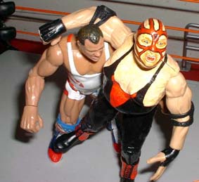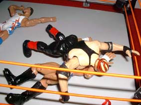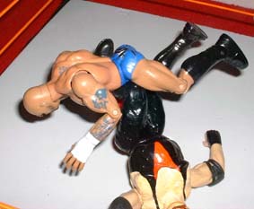 Angle comes from behind and trys to lift Vader for an Angleslam.