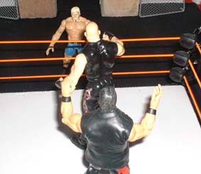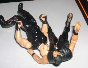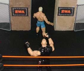 Eddie drops Albert with a reverse DDT.
