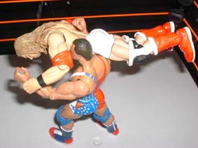 Angle takes Christian down with an amateur move.