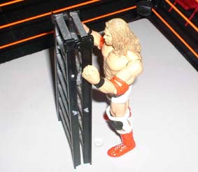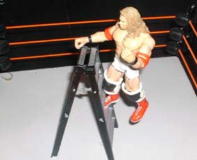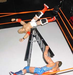 But Christian grabs hold of the ladder and pulls it down ontop of himself. Smart thinking there, he may be hurt more, but he's still in this match.